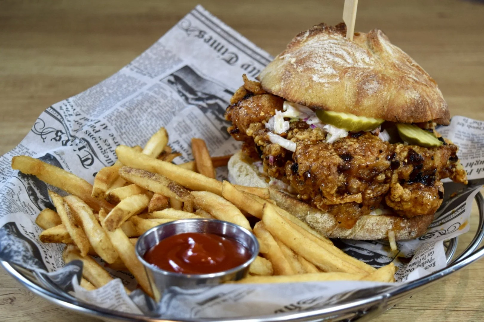 At Outpost Neighborhood Tavern, everything’s made from scratch — big portions, bold flavors, and a touch of sass in every bite. From fried chicken and collard greens to burgers stacked sky-high and brunch plates that hit just right, our menu is all about good food done right.